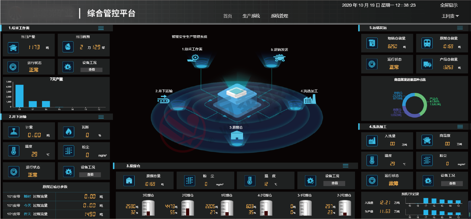 基于礦山工業(yè)互聯(lián)網(wǎng)平臺(tái),可實(shí)現(xiàn)煤礦生產(chǎn)系統(tǒng)的融合監(jiān)控,如從綜采工作面、井下運(yùn)輸、原煤倉(cāng)、洗選加工到裝車(chē)發(fā)運(yùn)的主煤流綜合控制,實(shí)現(xiàn)一鍵啟停。